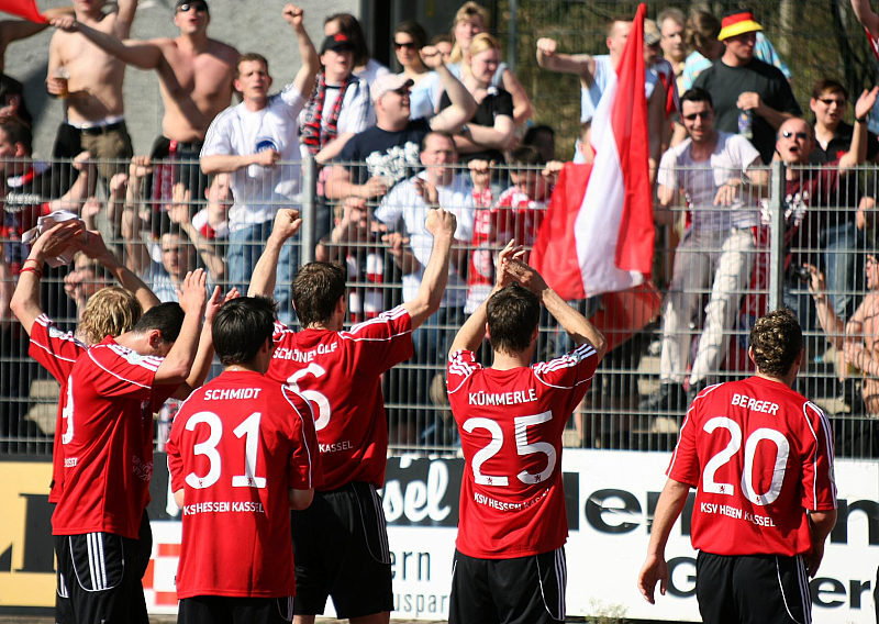 Jubel nach Spielende vor den mitgereisten KSV-Fans