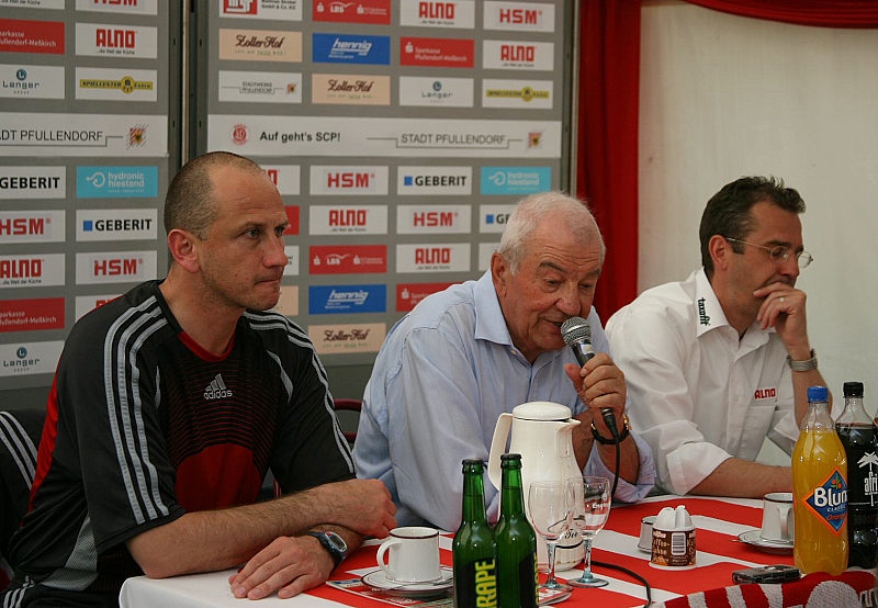 Pressekonferenz: Matthias Hamann (li.), Hans-Hermann Krane (Manager SCP) und Michael Feichtenbeiner (Trainer SCP, v.li.)