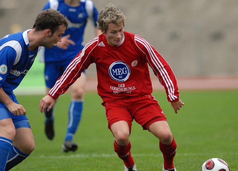 Ole Schröder (Kapitän Karlsruher SC II) (L) im Zweikampf mit Thorsten Bauer (KSV Hessen Kassel)