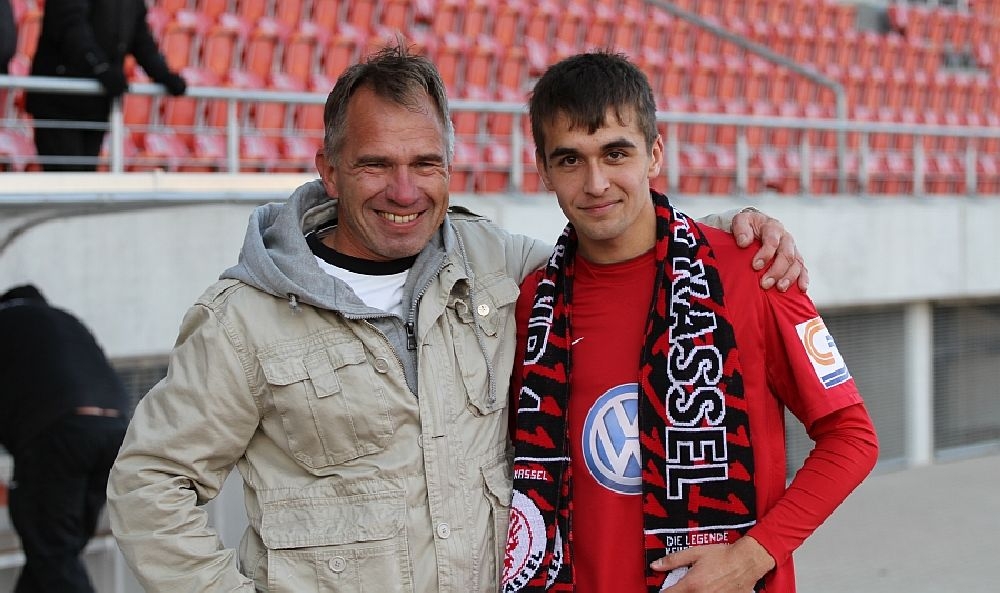 Nach einem gelungenem Debut,bekommt Marco Dawid einen Fanschal geschenkt und ein Lob von jens Rose