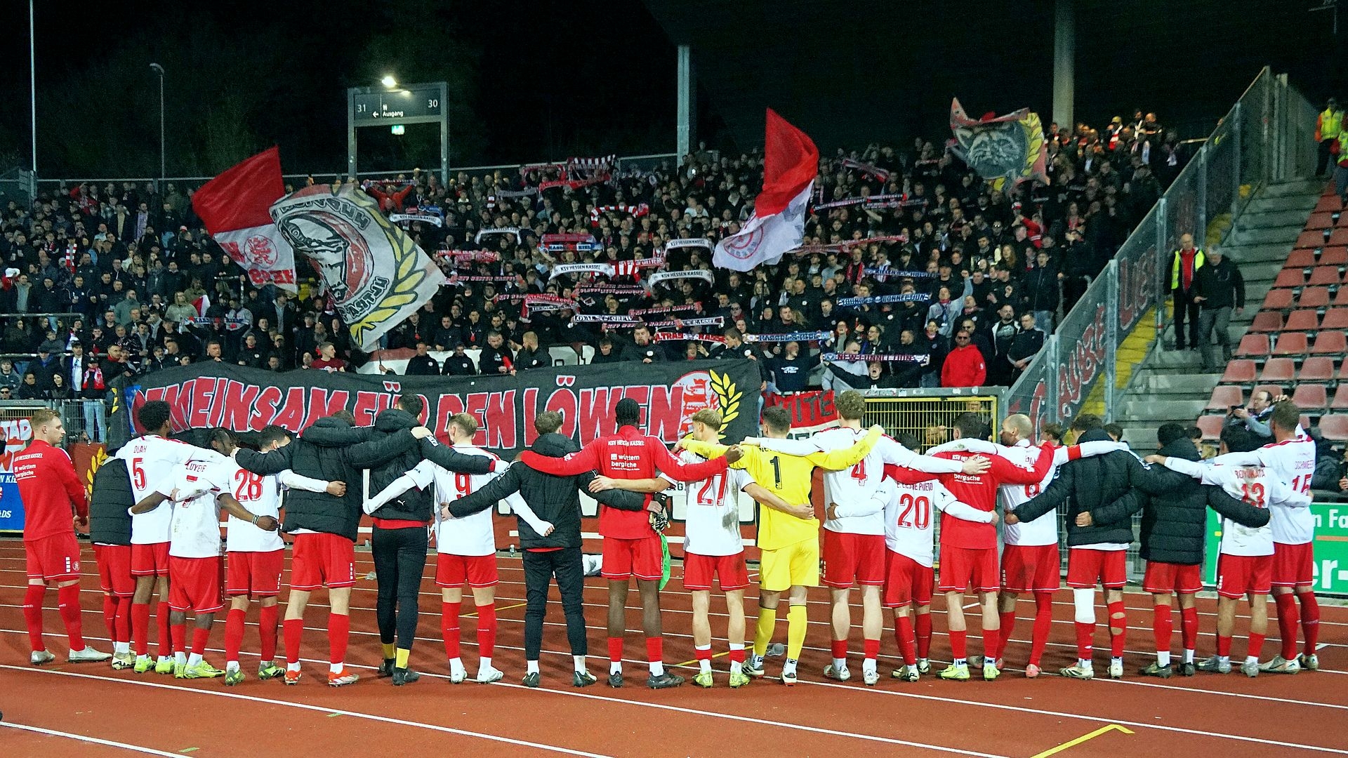 KSV Hessen Kassel - Kickers Offenbach, Einschwören, Mannschaftskreis, Bengalo