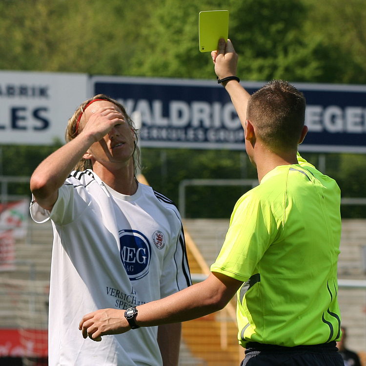 Daniel Beyer hat es erwischt. Die fünfte gelbe Karte der Saison durch Schiedsrichter Kampka