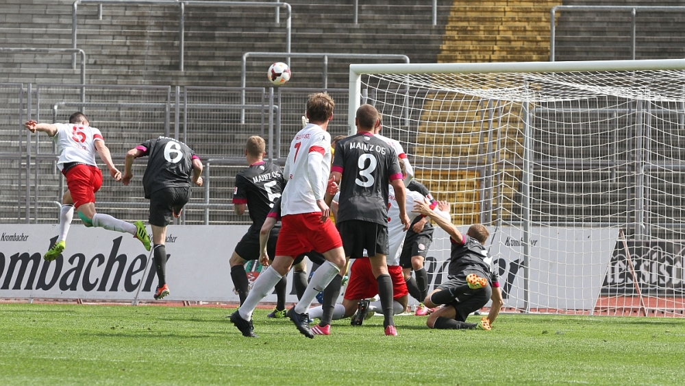 Stefan Müllers Kopfball streicht knapp über das Mainzer Tor