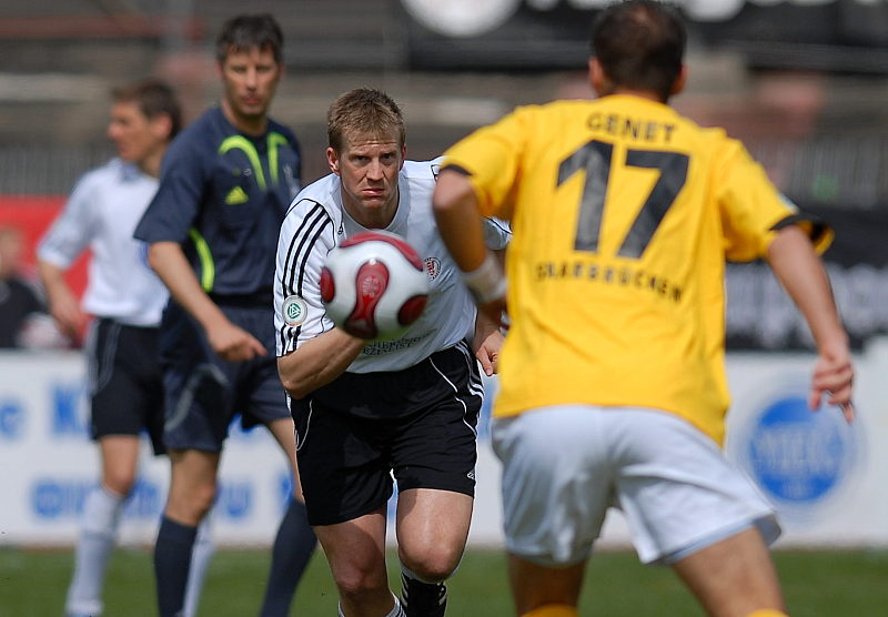 Daniel Beyer gewinnt Zweikampf gegen den Saarbrücker Stephan Kling (rechts)