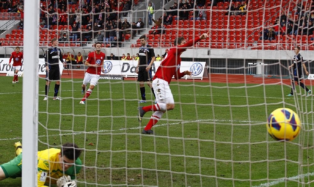 Henel köpft das 1:0 Im Hintergrund Marz und Mayer