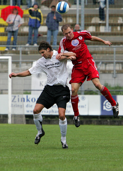 Vitus Nagorny von Elversberg im Kopfball gegen Dominik Suslik. Foto: Schlichter