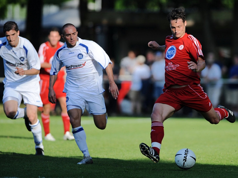 Freistoß durch Mathias Heckenberger (KSC II), in der Mauer: Bauer, Busch, Berger (KSV)