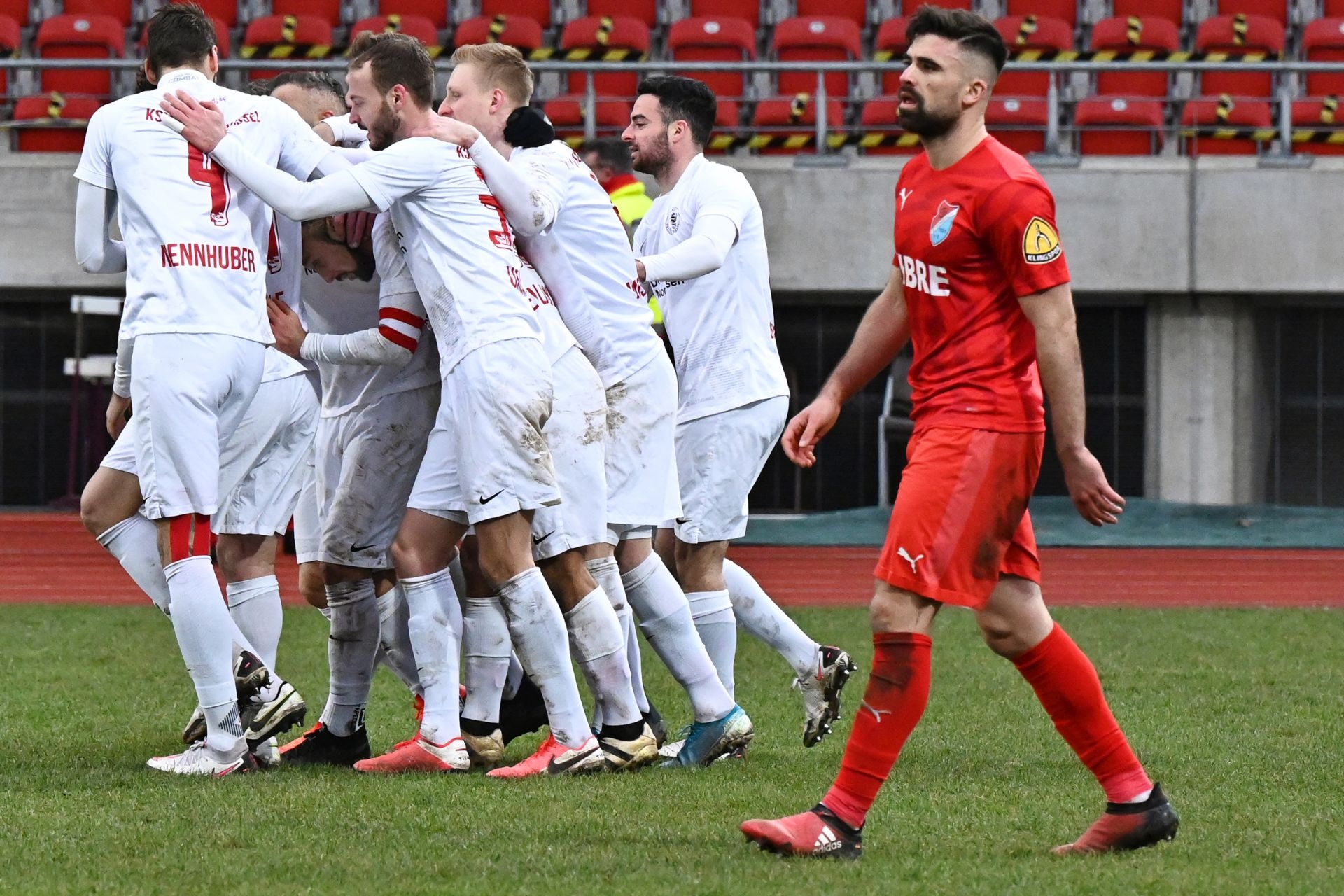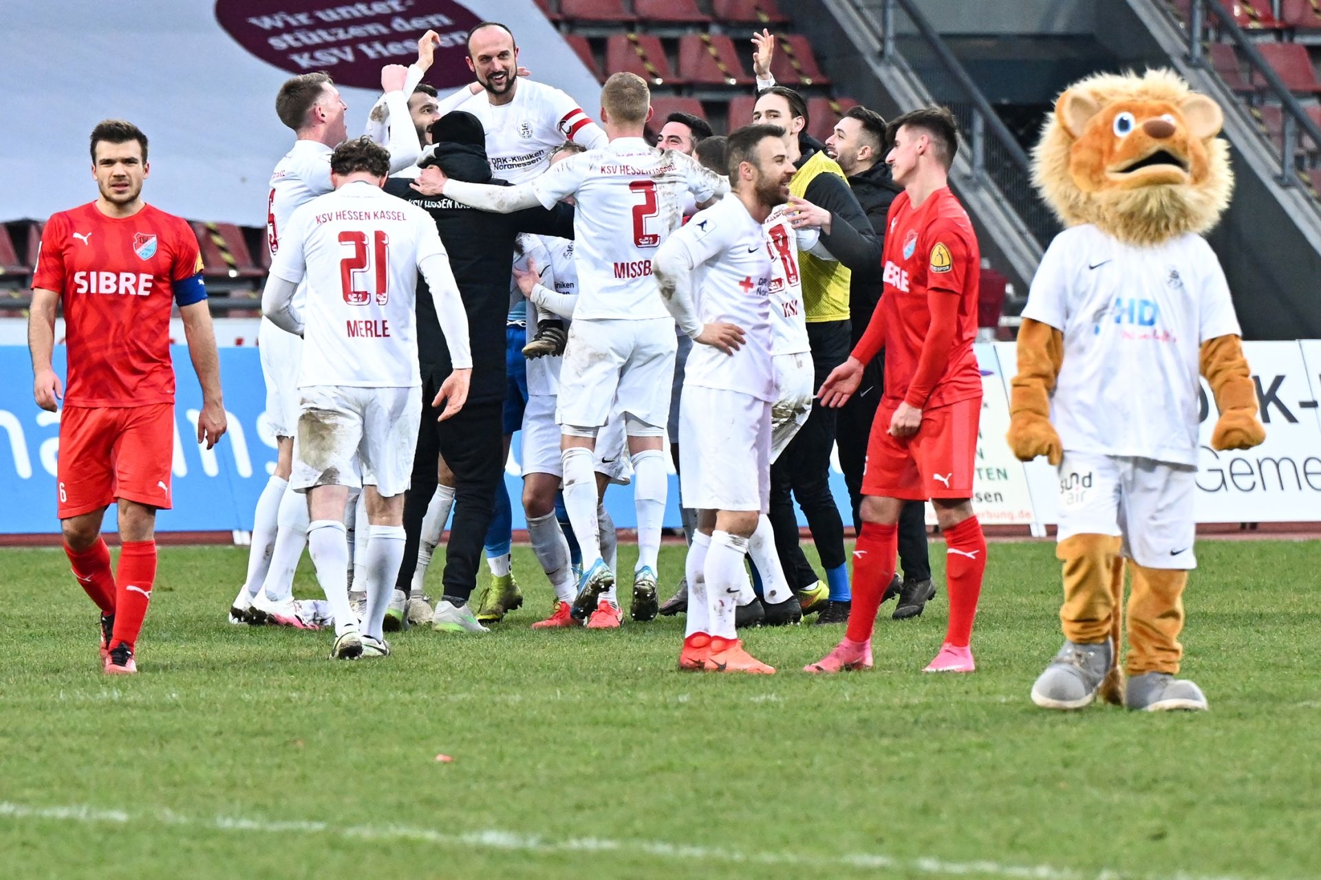 Regionalliga Südwest 2020/21, KSVHessen Kassel, TSV Steinbach Haiger, Endstand 2:1, Totti, Sergej Evljuskin, Kreis, Jubel