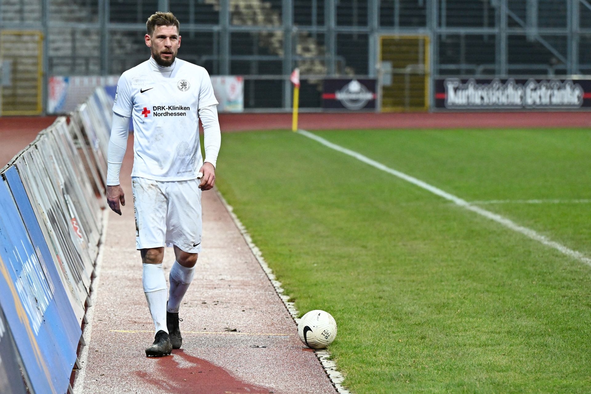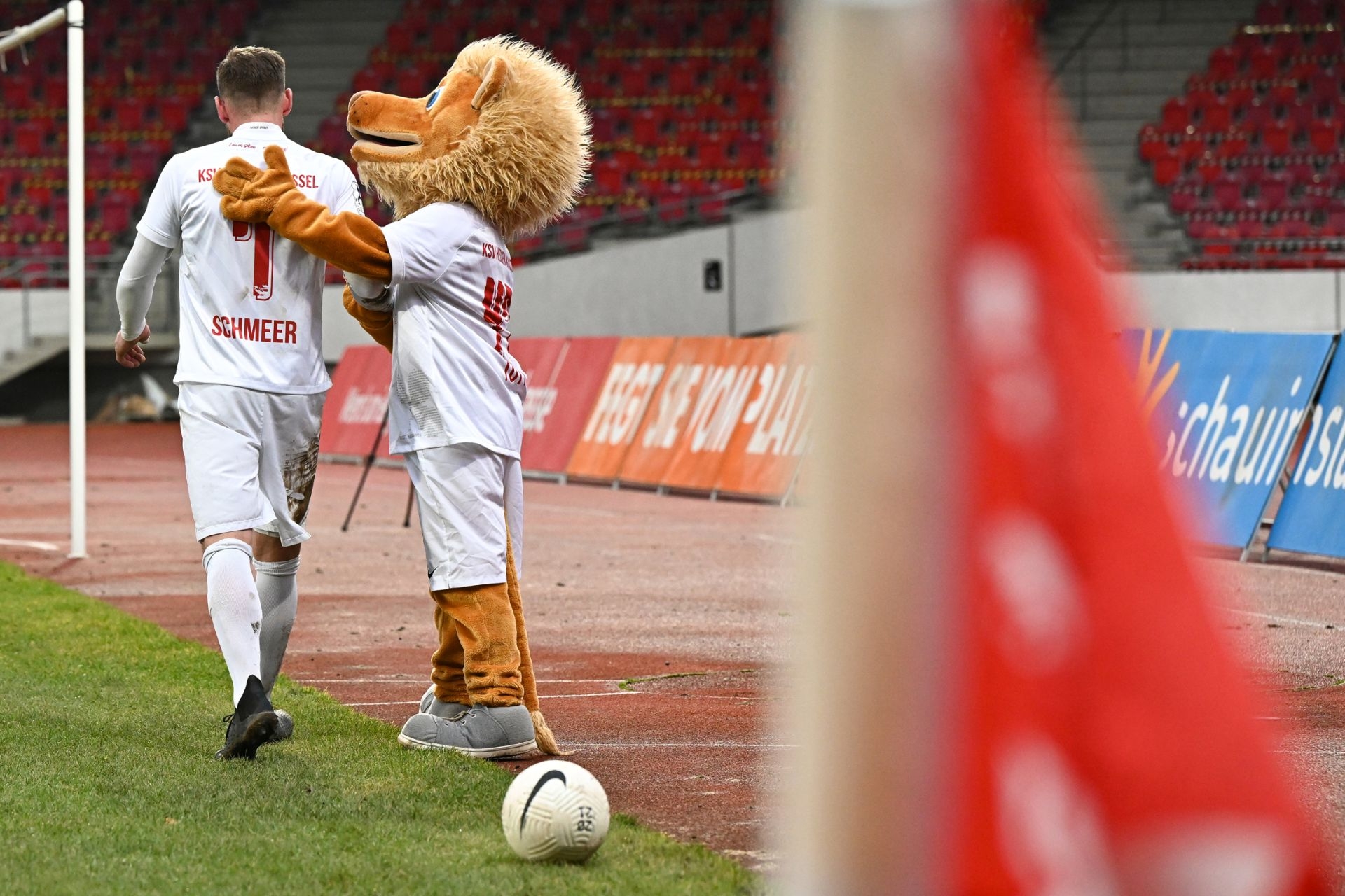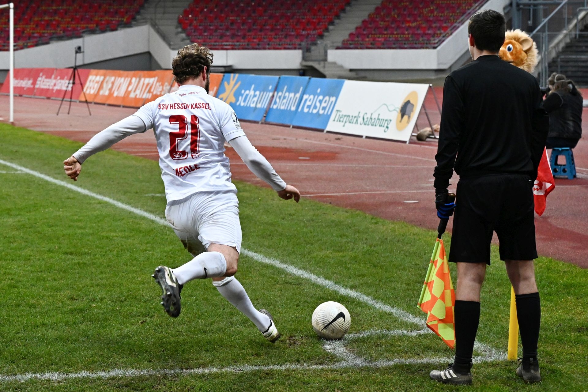 Regionalliga Südwest 2020/21, KSVHessen Kassel, TSV Steinbach Haiger, Endstand 2:1, Sebastian Schmeer, Totti, Eckfahne, Ball