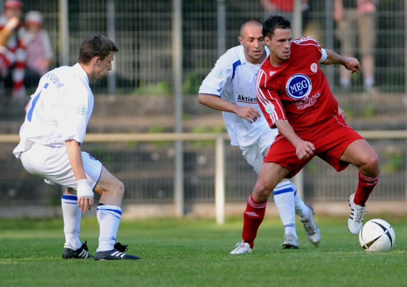 Thorsten Bauer (KSV Hessen Kassel) im Zweikampf gegen Fabian Wilhelmsen (KSC II)