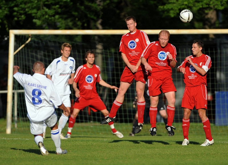 Freistoß durch Mathias Heckenberger (KSC II), in der Mauer: Bauer, Busch, Berger (KSV)