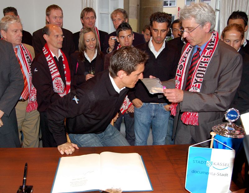 Julio Cesar trÀgt sich in das Goldene Buch der Stadt Kassel ein
