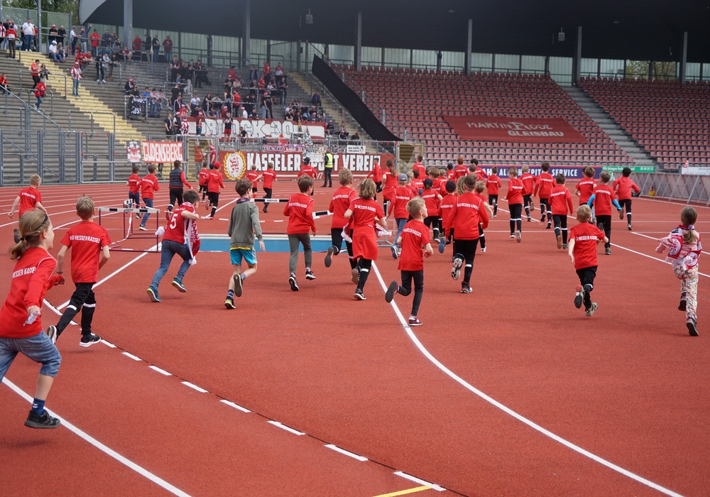 Einlauf der Mannschaft mit Maskottchen Totti und Einlaufkinder