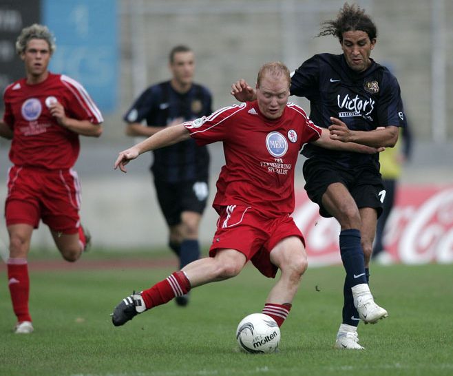 Zweikampf zwischen dem Saarbrücker Mustapha Hadji und Sebastian Busch (Foto: Schlichter)