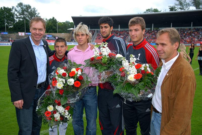 Abschied Teil 1: Jochen Gabriel (li.) und Jens Rose (re.) verabschieden Wagner, Schwager, Turhan, Seeger