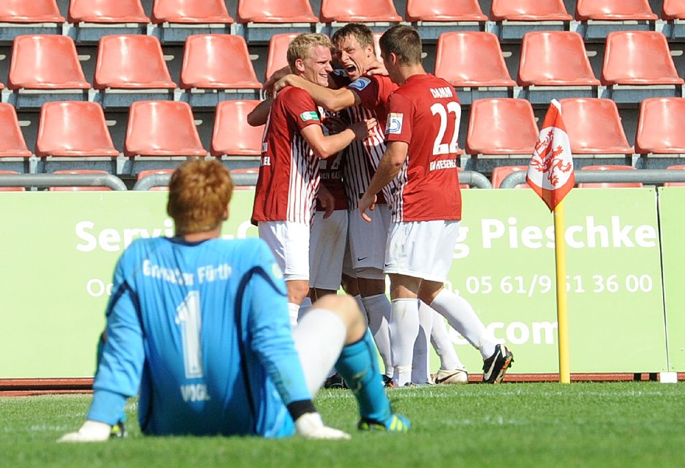 KSV Hessen - Greuther Fürth II: Jubel, Tim Knipping, Patrick Wolf, Enrico Gaede
