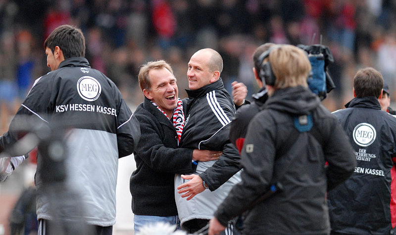 Freuen sich über die 3 Punkte, Jens Rose und Trainer Matthias Hamann (re.)