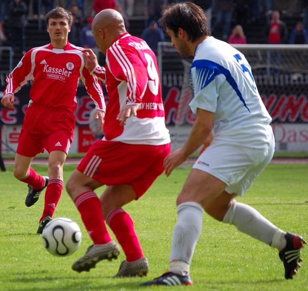 Matthias Hamann (KSV Hessen): "Wir haben jetzt den April abgeschlossen mit acht Siegen in acht Spielen, davon nur eins nicht ohne Gegentor. DafĂŒr verdient die Mannschaft ein groĂes Kompliment. So deutlich wie es das 3:0 sagt, war es allerdings heute nicht". Fotos: Roland Sippel, out take film