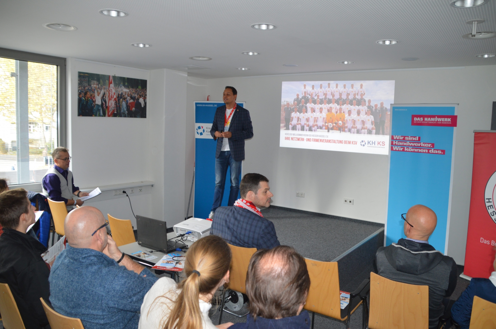 Gemeinsam mit der Kreishandwerkerschaft Kassel fand beim Spiel gegen den SV Steinbach am 12. Oktober 2019 im Kasseler Auestadion die BegrĂŒĂung der neuen Auszubildenden im Handwerk statt.