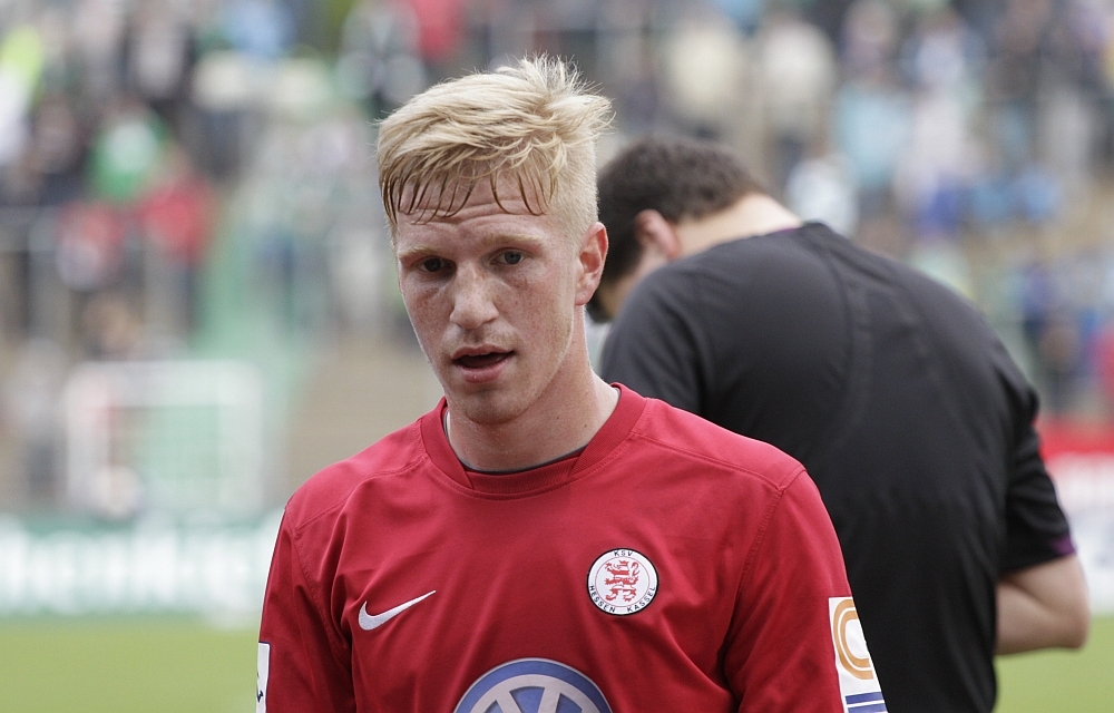 Viktor Riske, im Hintergrund die mitgereisten KSV Fans
