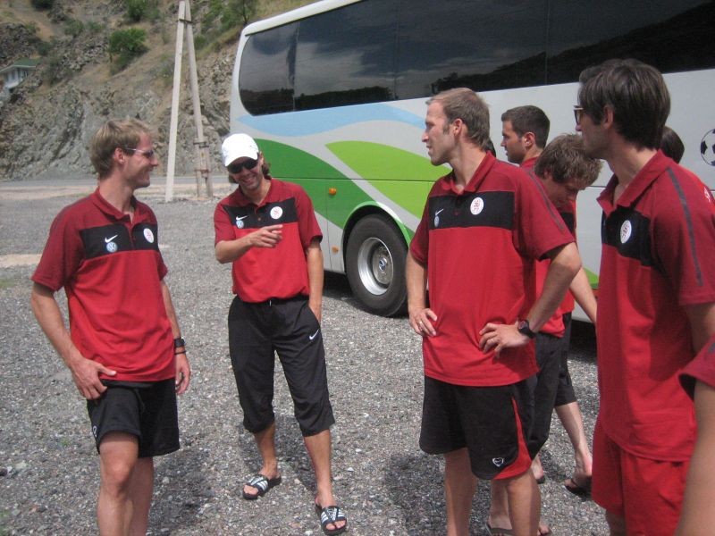 Fünf Löwen in Tadschikistan: Vier Fußballer des KSV Hessen Kassel (von links) Kai Koitka, Sven Hoffmeister, Sebastian Gundelach und Ken Asaeda während des Trainingslagers.