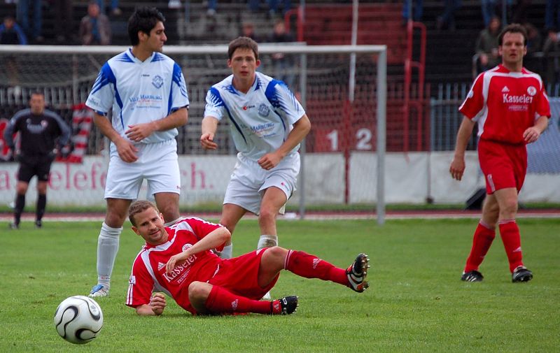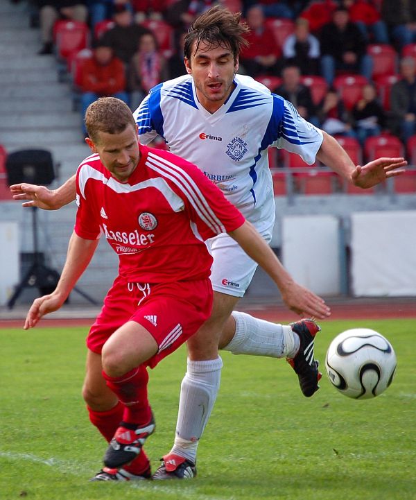 Matthias Hamann (KSV Hessen): "Wir haben jetzt den April abgeschlossen mit acht Siegen in acht Spielen, davon nur eins nicht ohne Gegentor. DafĂŒr verdient die Mannschaft ein groĂes Kompliment. So deutlich wie es das 3:0 sagt, war es allerdings heute nicht". Fotos: Roland Sippel, out take film