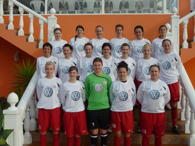 Frauen im Trainingslager auf Gran Canaria: Mannschaftsfoto in rot-weiß