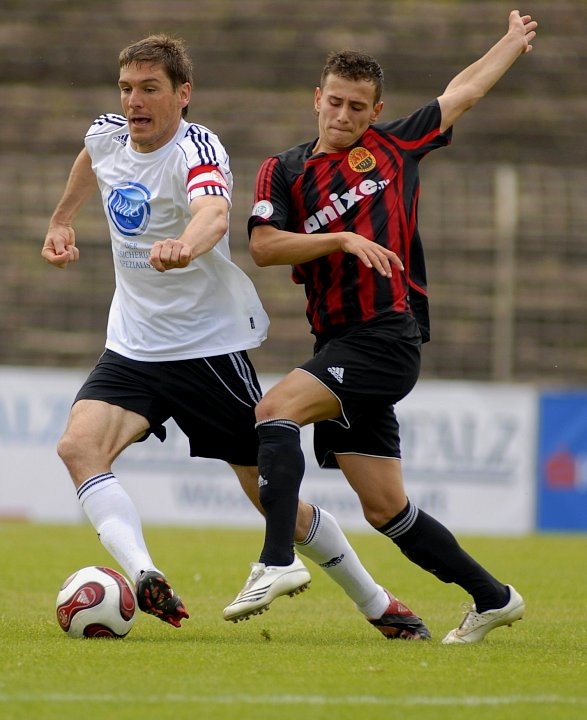 Martin Scholze (KSV Hessen Kassel) im Zweikampf mit Philipp Stiller (FSV LU) (R)