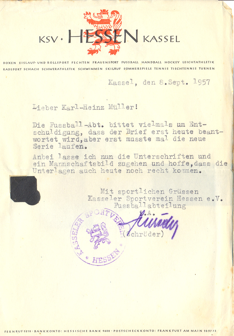 Bilder, SchriftstĂŒcke/Unterschriften aus den 50er Jahren und Mannschaftsfotos und Einzelportraits bis in die 80er.