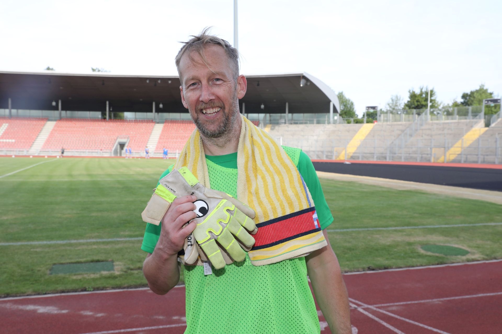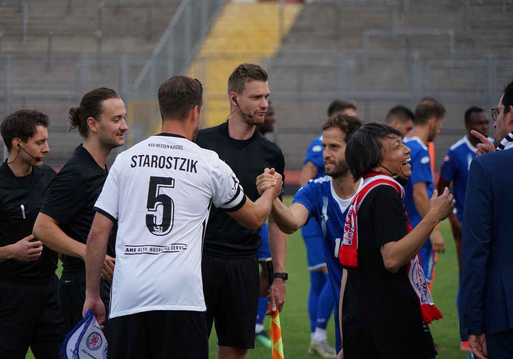 Freundschaftsspiel KSV Hessen - Hapoel Nir Ramat HaSharon: Jens Rose begrüßt die Gäste im Auestadion