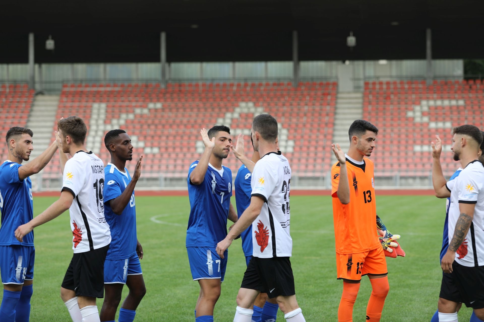 Freundschaftsspiel KSV Hessen - Hapoel Nir Ramat HaSharon: Shakehands vor dem Spiel