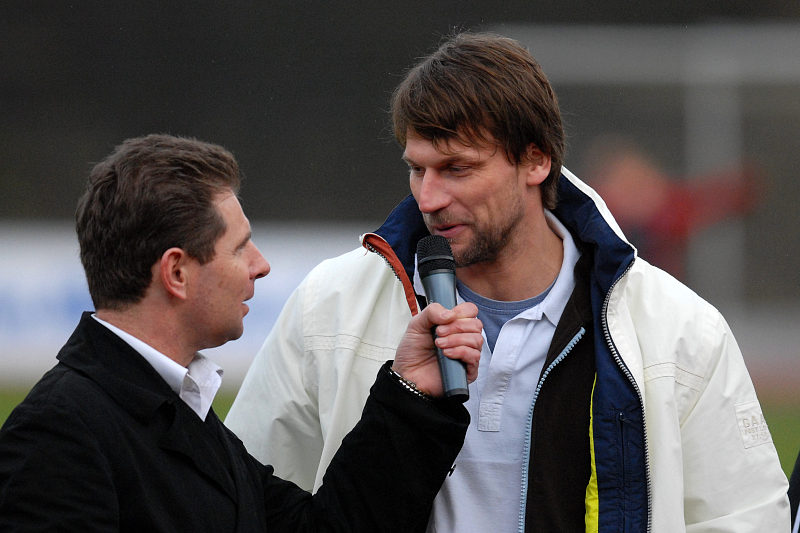Kopfballduell zwischen Thorsten Schönewolf (oben) und Halut Türkeri