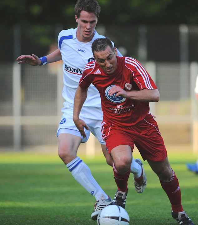 Thorsten Bauer (KSV Hessen Kassel) im Zweikampf gegen Fabian Wilhelmsen (KSC II)