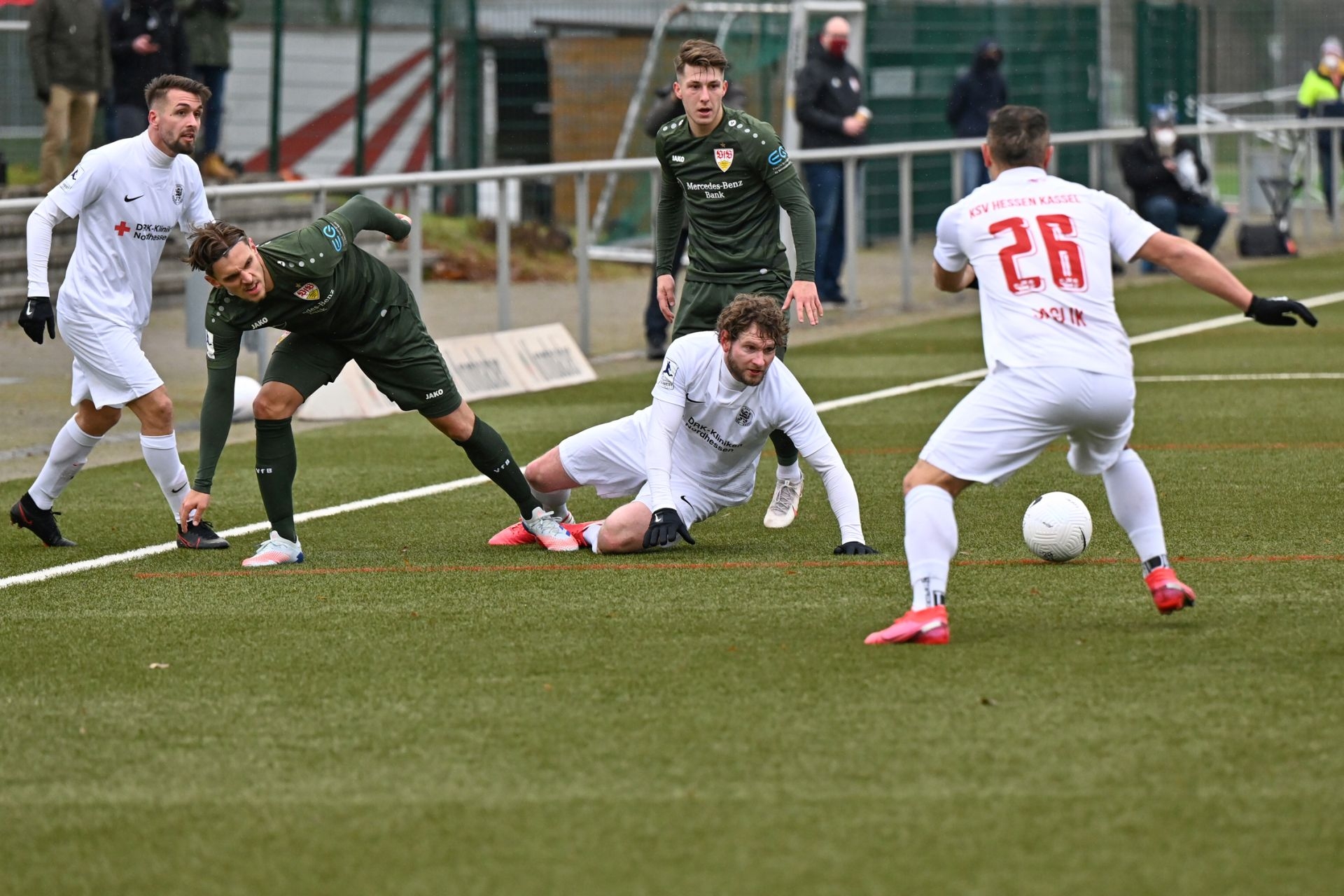 Regionalliga Südwest 2020/21, KSV Hessen Kassel, VfB Stuttgart II, Endstand 0:4, Marco Dawid, Ingmar Merle (am Boden(, Mahir Saglik