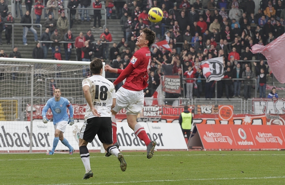 Tobias Damm, später Schütze des 3:0, beim Kopfball