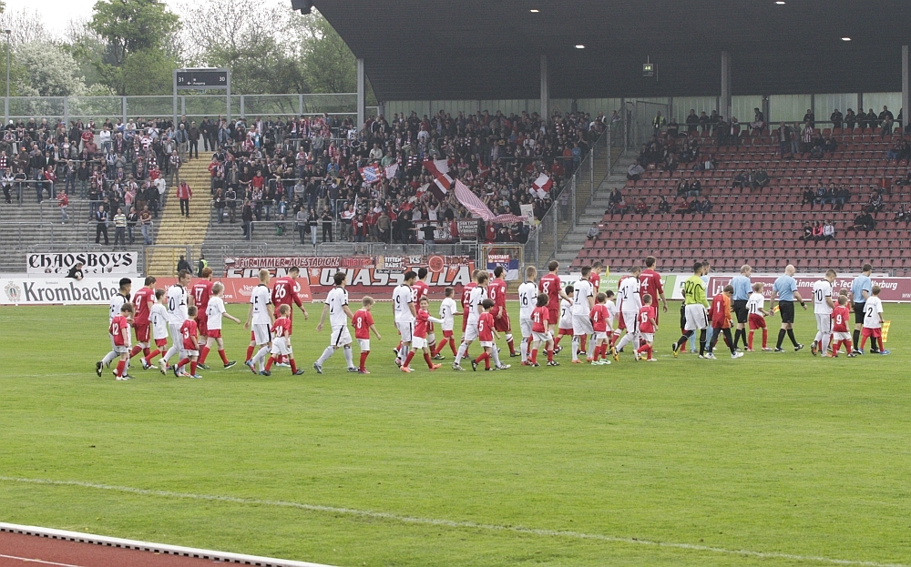Mannschaftskreis nach dem Sieg, vor der Nordkurve
