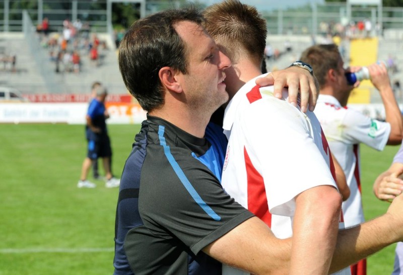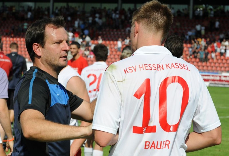 KSV Hessen - Karlsruher SC II: Mirko Dickhaut mit Thorsten Bauer im Gespräch