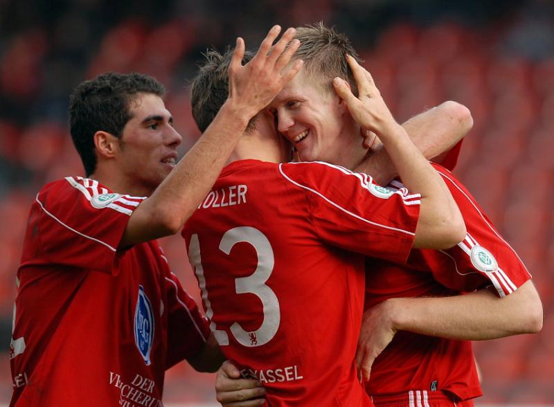 Jubelszenen Teil 1: Thorsten Bauer (KSV Hessen Kassel) und Arne Schmidt (KSV Hessen Kassel) nach dem 1:0