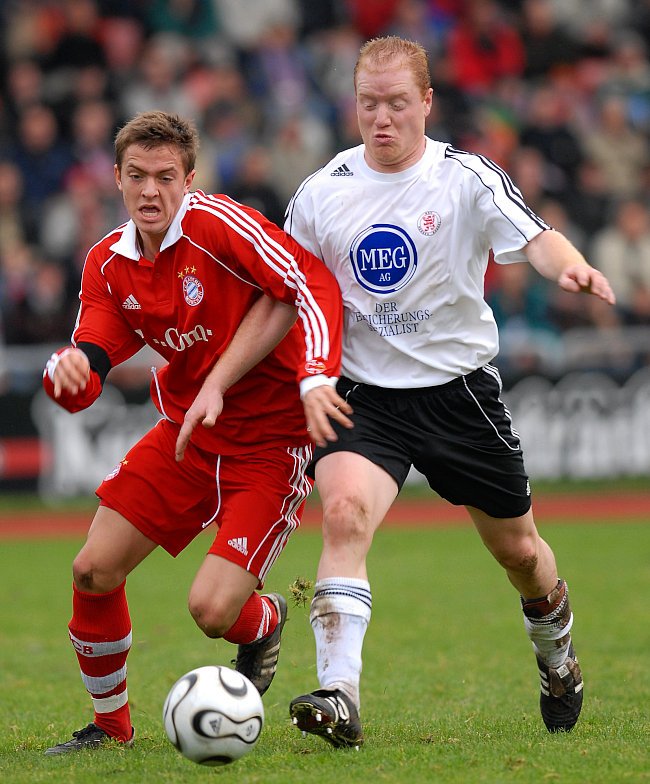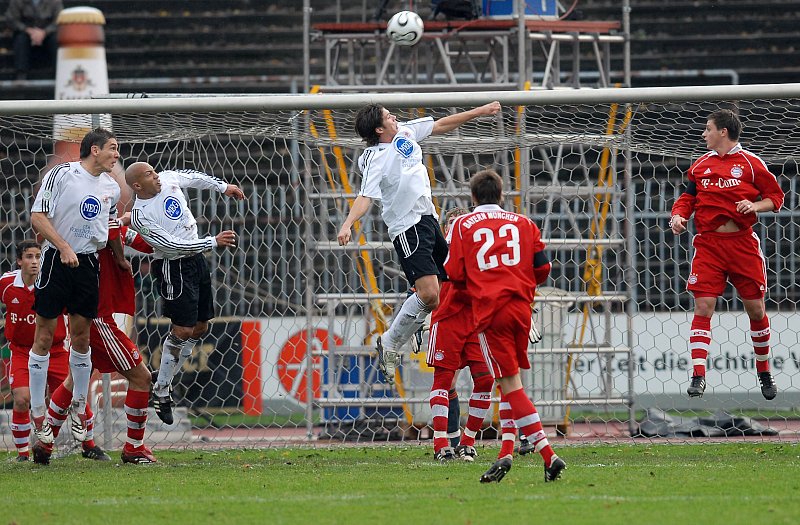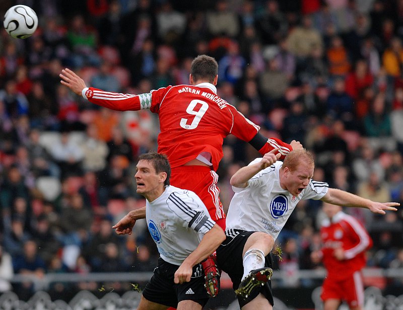 Kopfballduell Christoph Keim (li.) und Bayern Stürmer Stefan Maierhofer