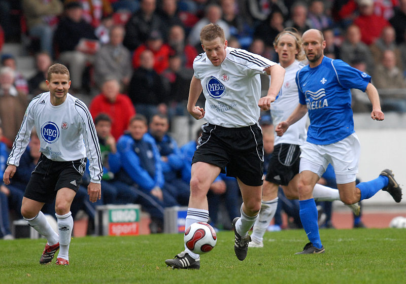 Kampf um den Ball zwischen Mario Klinger (2. v. l.) und Marcus Mann (l.)