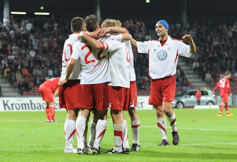 KSV Hessen - SC Pfullendorf: Torjubel Jubel Enrico Gaede, Tobias Damm, Mario Pokar und Rene Ochs
