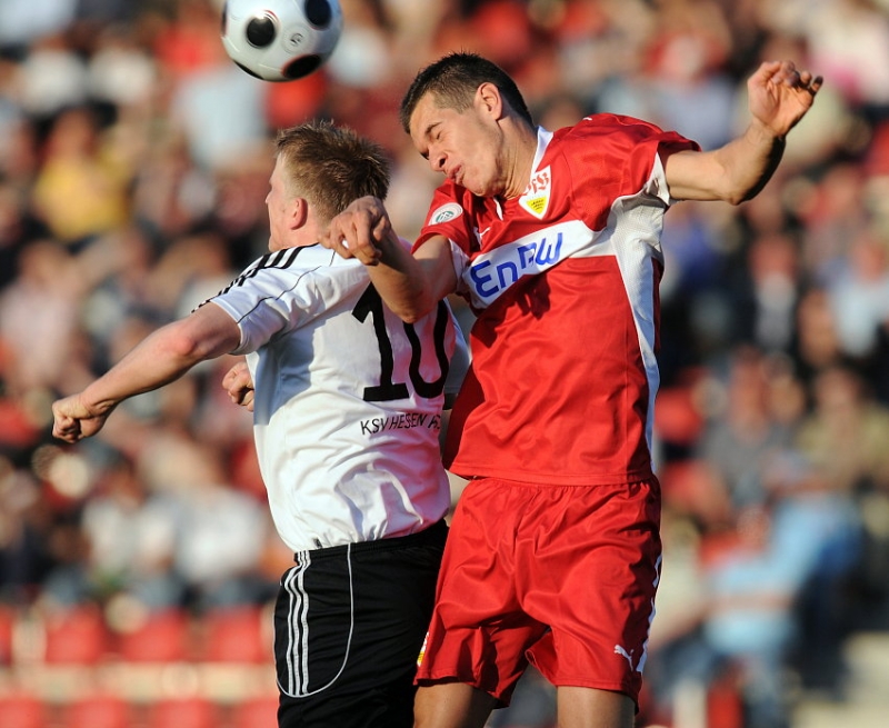 Sebastian Zinke (KSV Hessen Kassel) (L) gegen Michael Klauß (VFB Stuttgart II)