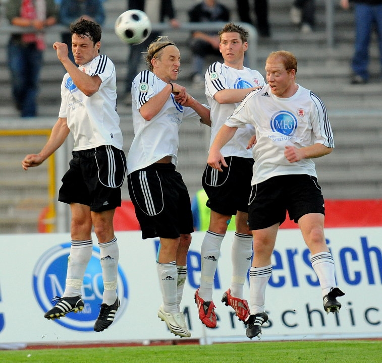 Thorsten Schönewolf (KSV Hessen Kassel) (M) im Kopfballduell