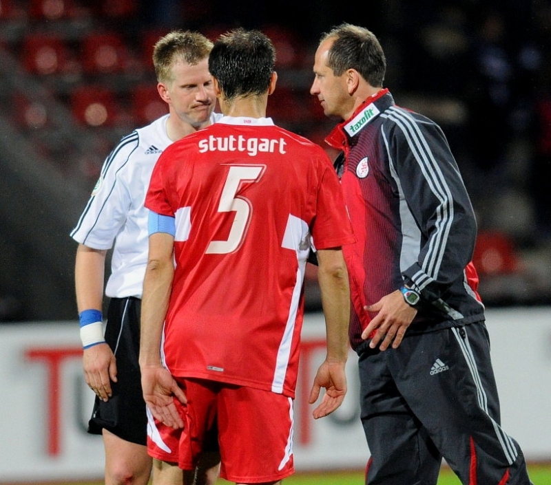 1:1 Endstand: Thorsten Bauer (KSV Hessen Kassel) (L), Marijan Kovacevic (VFB Stuttgart II), Matthias Hamann (Trainer KSV Hessen Kassel )